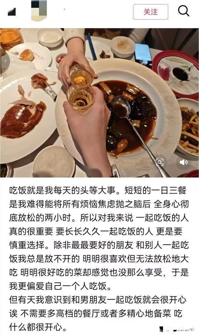 女博士后还在社交平台分享了自己的小感悟,她原本是个偏爱独自吃饭的人,觉得和外人一起吃饭总是放不开,再好的菜也吃不出滋味,可和这位男朋友一起吃饭时,哪怕没有高档的餐厅,没有精心准备的菜品,吃什么都觉得开心,这份简单的幸福,也让网友们纷纷送上祝福。